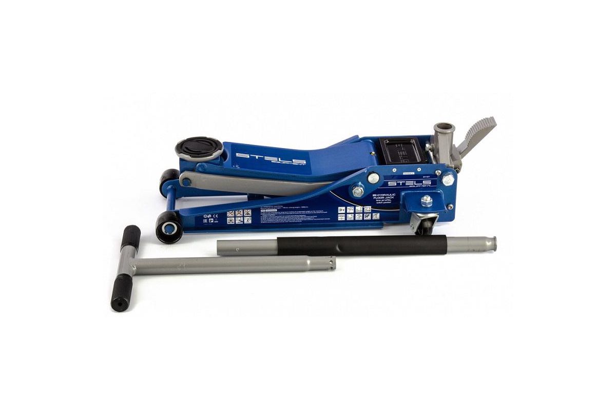 Домкрат предназначен для профессионального использования в автосервисах и шиномонтажных мастерских. Усиленная конструкция. Двухплунжерный насос быстрого подъема QUICK LIFT. Т-образная обрезиненная поворотная рукоятка с автовозвратом и клапаном закрытия позволяет контролировать опускание автомобиля. Модифицированный узел спуска значительно увеличивает ресурс и надежность домкрата. Педаль для быстрого подвода подъемного рычага под автомобиль. Предохранительный клапан давления предотвращает перегрузку. Рукоятка подъема/опускания оснащена мягким протектором для предотвращения повреждения корпуса автомобиля. Сверхнизкий подхват 75 мм. Для профессионального использования. В комплекте накладка на опорную площадку. Имеет европейские и российские сертификаты качества ( TUV, CE, EAC).