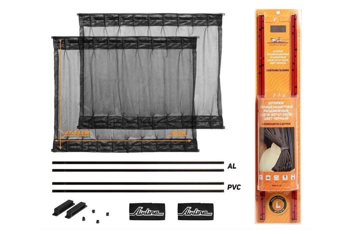 Шторки солнцезащитные, раздвижные. Большим преимуществом таких шторок является удобство в применении и большая площадь их покрытия, что обеспечивает полную конфиденциальность пассажирам. К преимуществу данного вида шторок можно также отнести их особый вид, способный украсить салон, предать ему домашний уют и комфорт. Шторки AIRLINE имеют универсальное крепление и различаются по размерам, что позволяет подобрать необходимый вариант под ваш автомобиль.